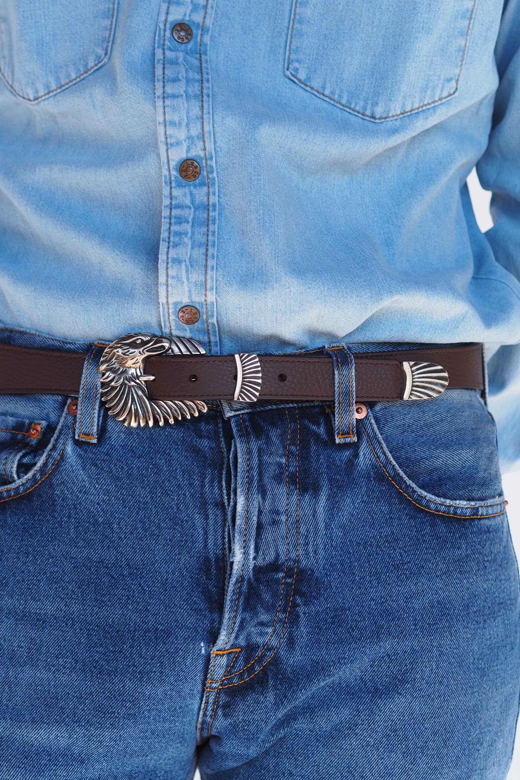 The “American Eagle” belt is an accessory with a western taste, made with high quality hammered leather, strong and resistant, and with a fantastic buckle representing an eagle .