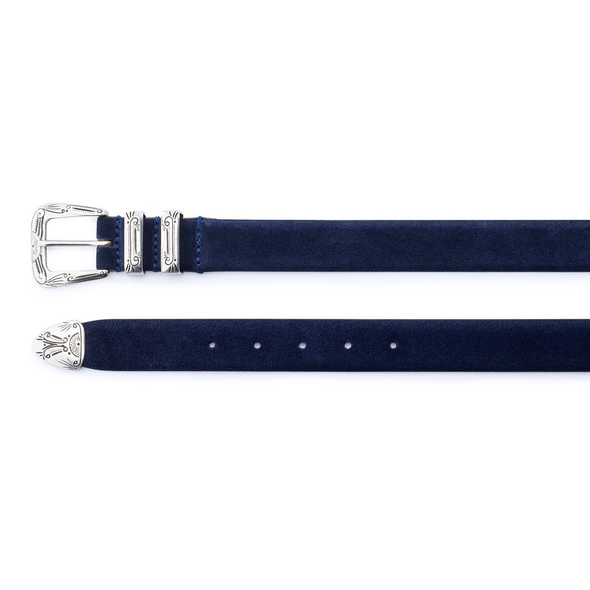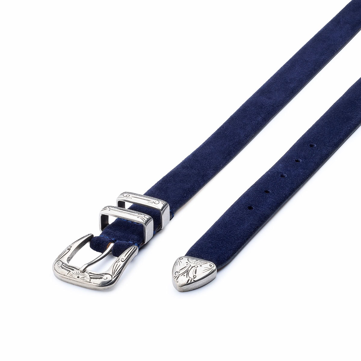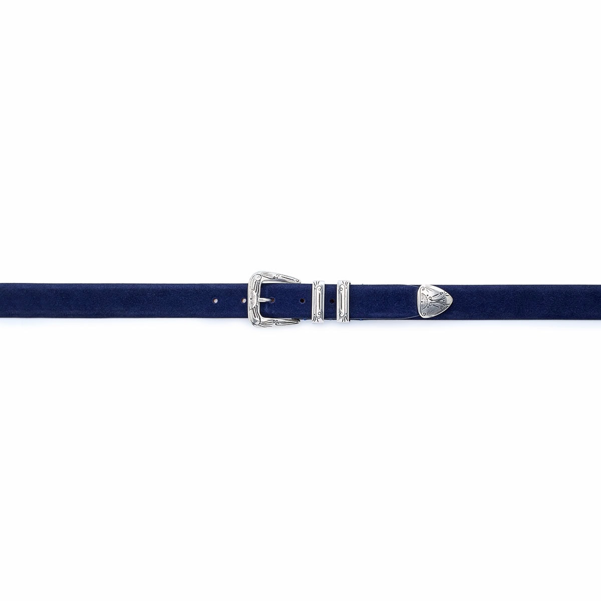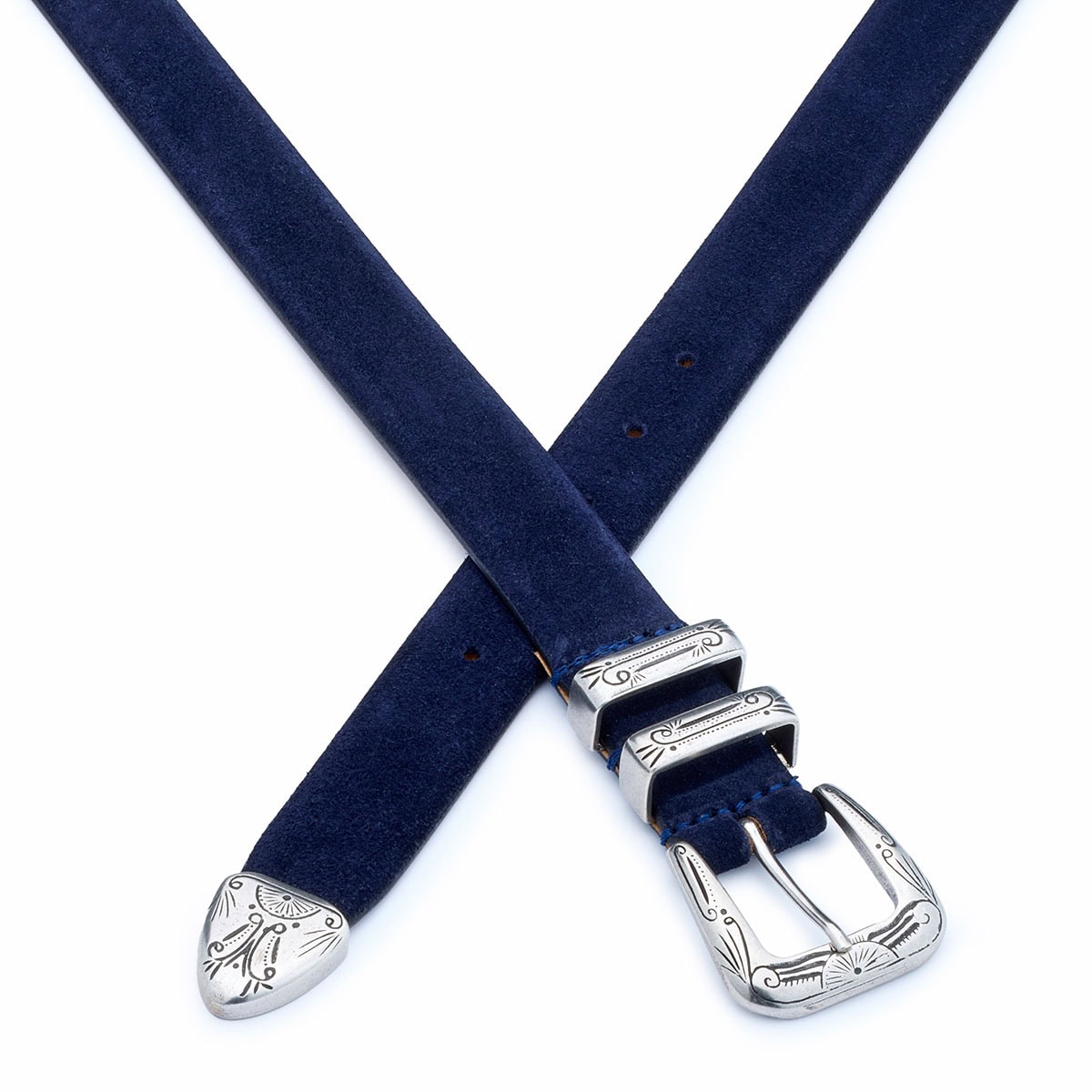 The Gipsy belt is inspired by the southwestern world and reflects the soul of Silver Ostrich’s belt designs, made of high quality suede leather and paired with a 4 piece buckle design called “Gipsy”. The buckle has a western design with decorative vintage-style engravings, typical of the American aesthetic of the 1970s and cowboy-chic style.