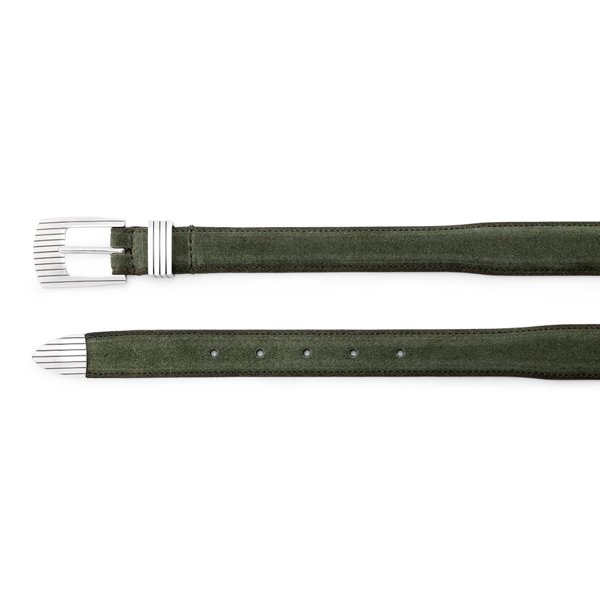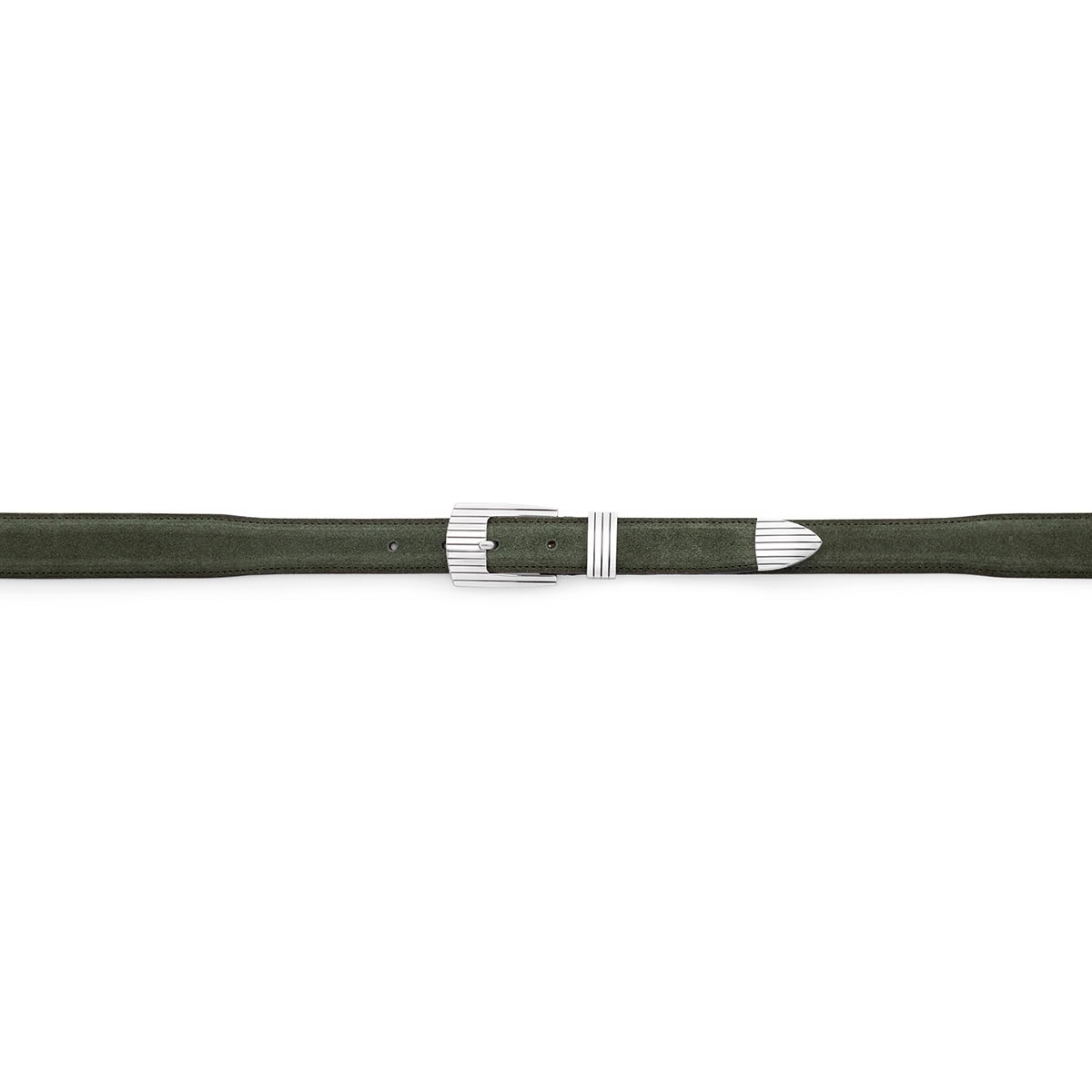 High quality suede leather belt, very pleasant to the touch for its consistency and thickness, combined with a 3-piece buckle design called “Rodeo”