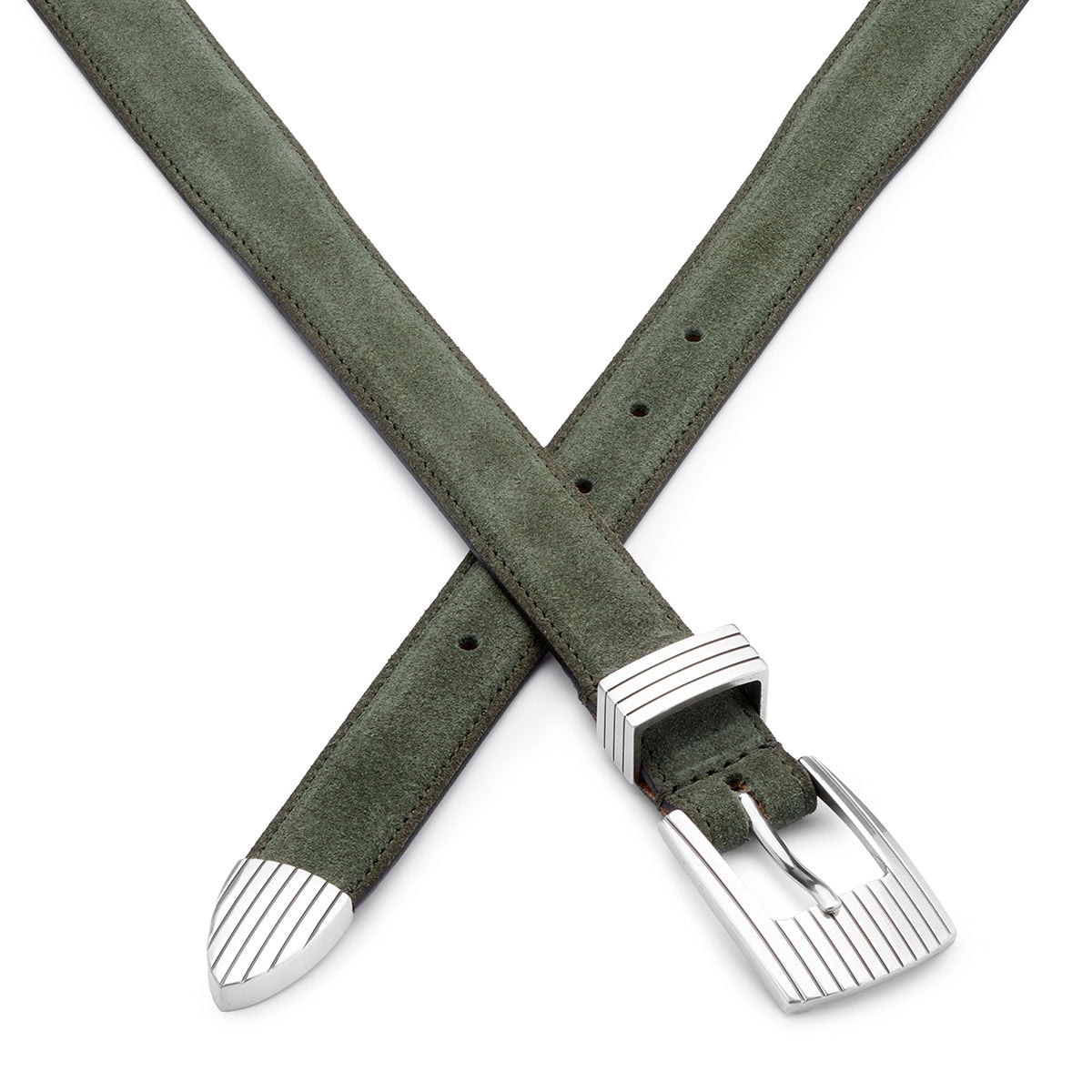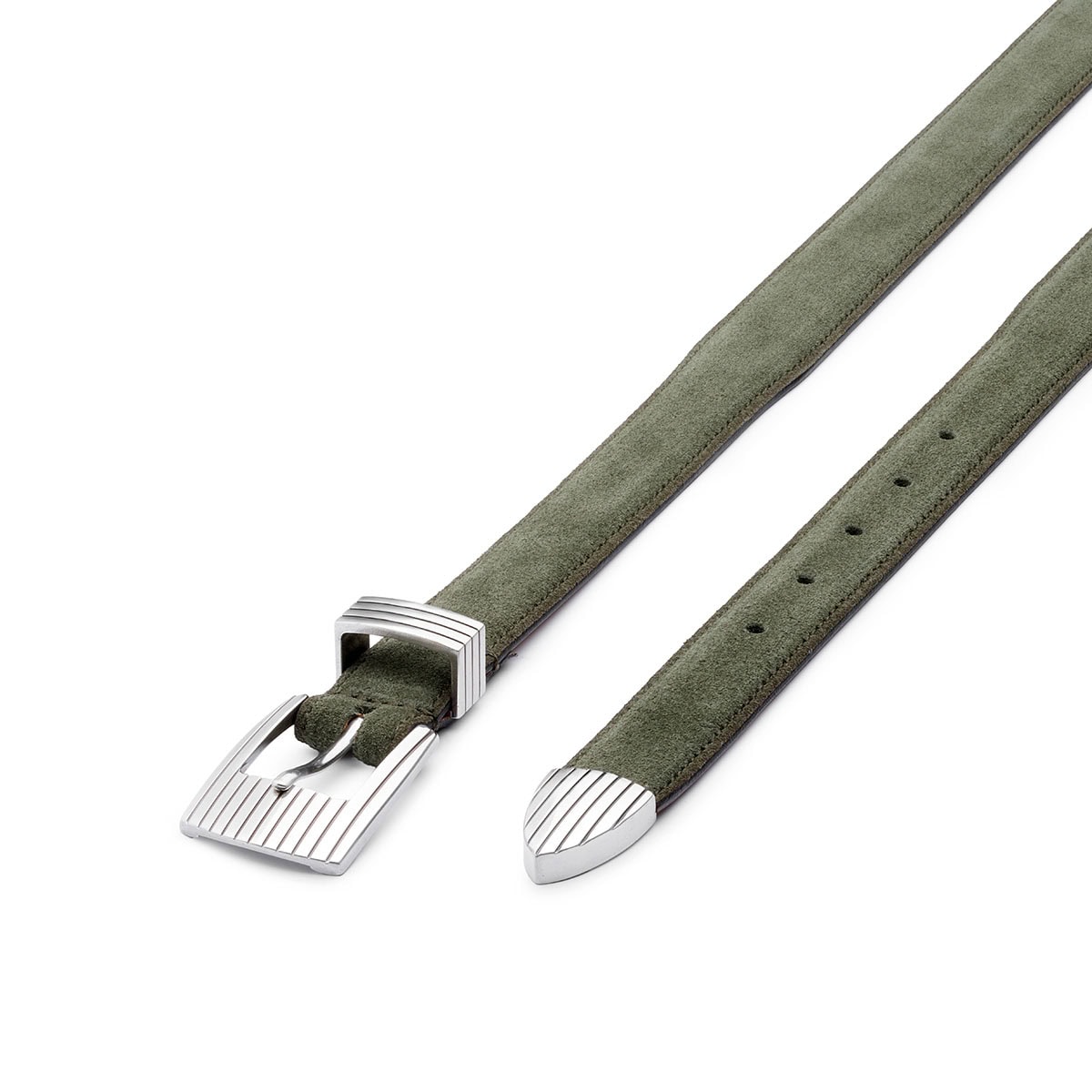 High quality suede leather belt, very pleasant to the touch for its consistency and thickness, combined with a 3-piece buckle design called “Rodeo”.