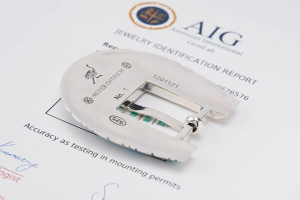 Your Sierra Collection buckle comes with an AIG certificate asserting the stones’ sheer quality, virtuoso stone-cutting and specific gravity as well as the silver purity. The choice of the belt’s leather remains yours, spanning from the classic Italian suede and calfskin to other more refined fine leathers we provide on demand.